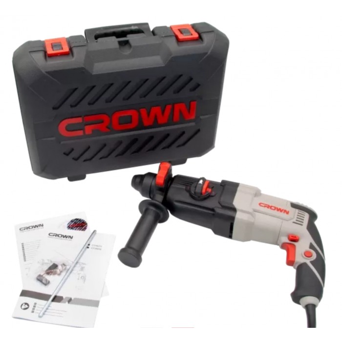 CROWN CT18211 — универсальный и надежный перфоратор для бытового и полупрофессионального применения. Обладает тремя режимами работы: сверление, сверление с ударом, долбление, что позволяет эффективно работать с бетоном, деревом, кирпичом и другими материалами.