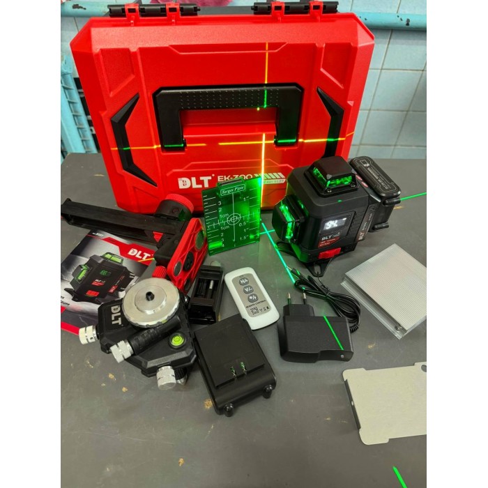 Лазерный нивелир DLT EK-300 это полнофункциональный 4D лазерный нивелир, проецирующий четыре плоскости по 360° (16 линий), может строить наклонные проекции, имеет рабочий диапазон до 40 метров (в зависимости от освещенности) и погрешности в диапазоне ±2мм/10м. Это инструмент для профессионалов в строительстве и отделке, которым нужна максимальная скорость и точность разметки.