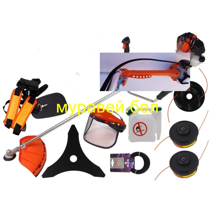 - металлический диск с креплениями для армированной, увеличенного диаметра лески для более густой травы, сорняков;
